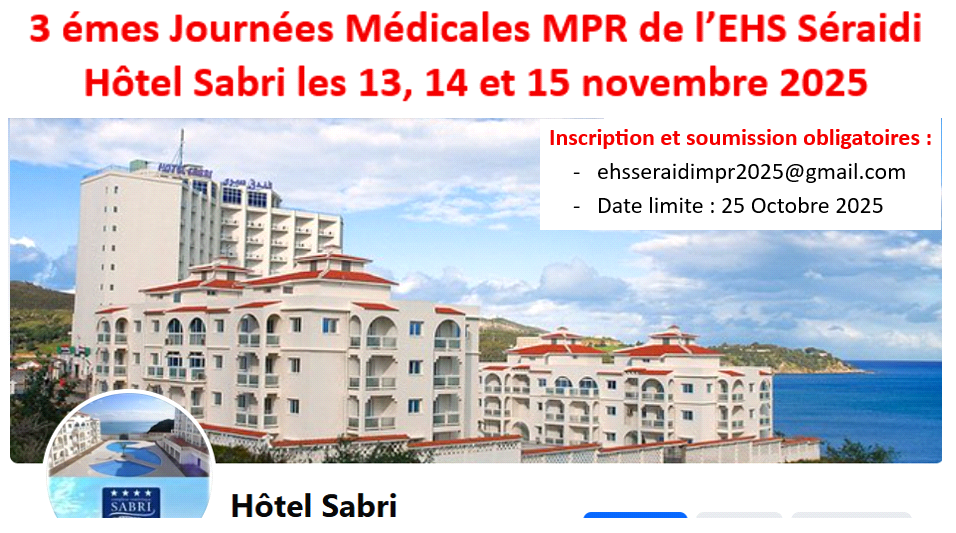 3émes journées Médicales MPR de l’EHS Séraidi 13, 14, 15 Novembre 2025 – Hôtel Sabri – Annaba
